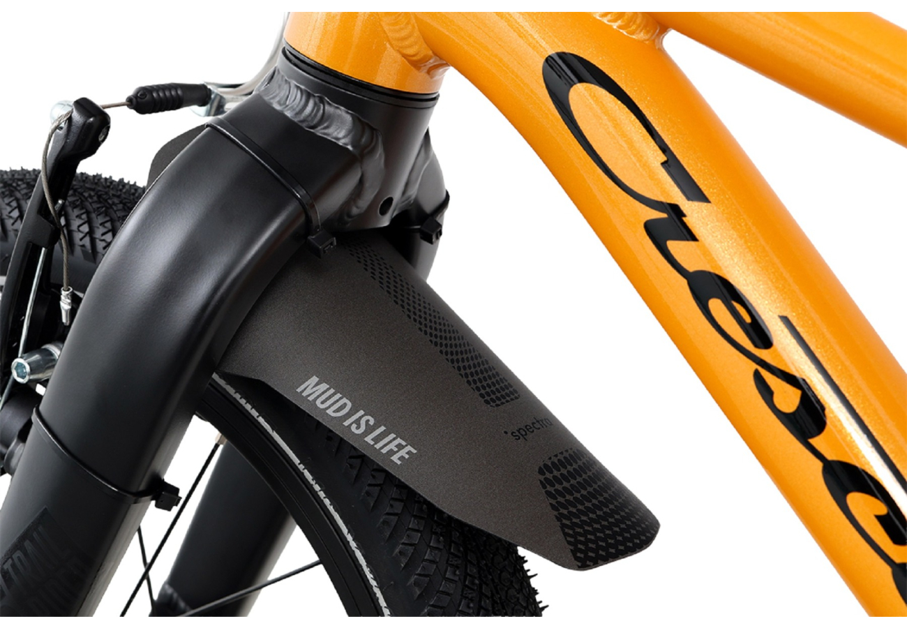 Leveät renkaat takaavat hyvän pidon ja ajomukavuuden eri alustoilla, kuten soralla ja metsäpoluilla. Kestävä ja kevyt alumiinirunko tekee pyörästä helposti hallittavan sekä lapselle että tarvittaessa kantavalle aikuiselle.